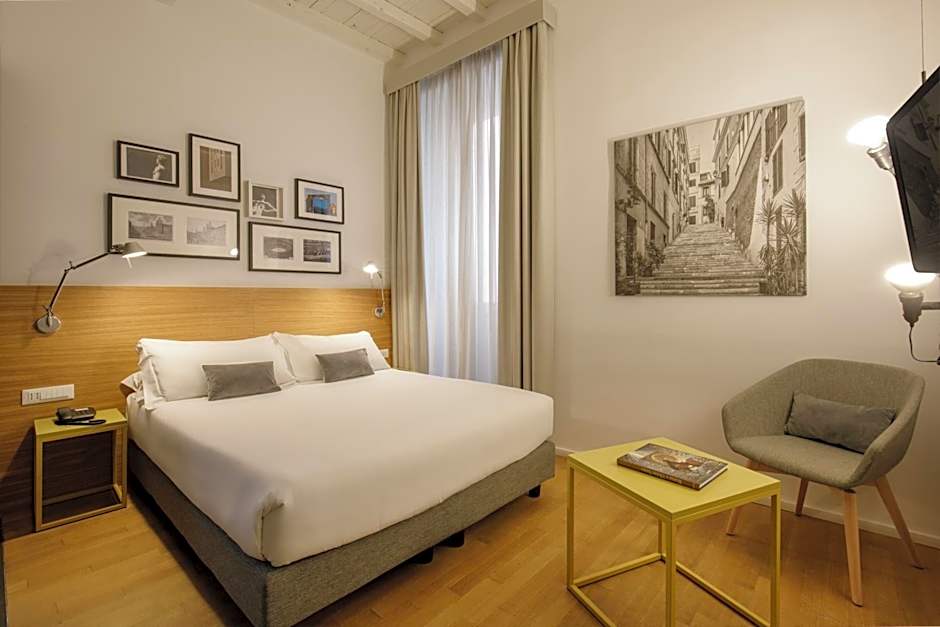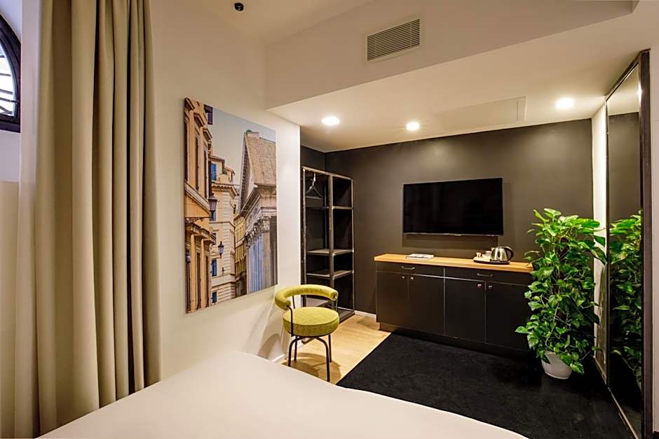 Featuring a private terrace with views across the rooftops of Rome, this elegant room includes an LCD TV with satellite channels.